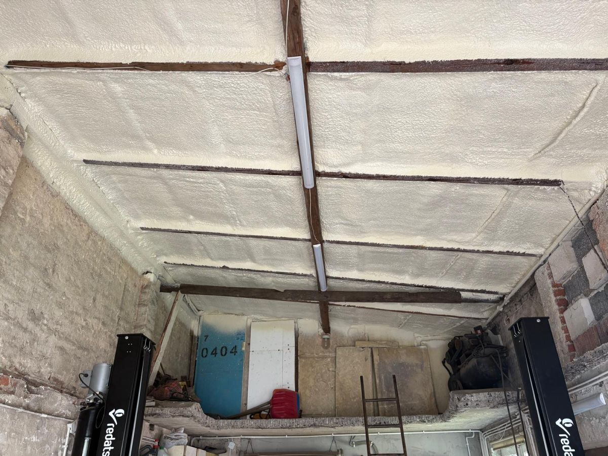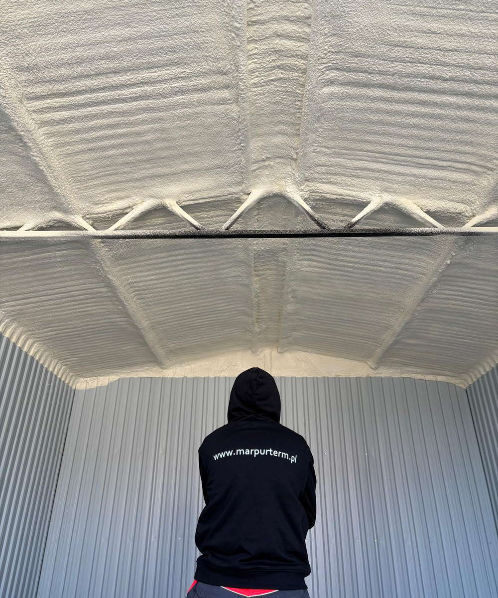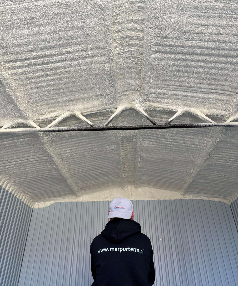 Przykładowe ocieplenie poddasza pianką PUR w warsztacie samochodowym pokazuje. Taka usługa skutecznie poprawić izolację termiczną i komfort pracy w obiekcie usługowym.