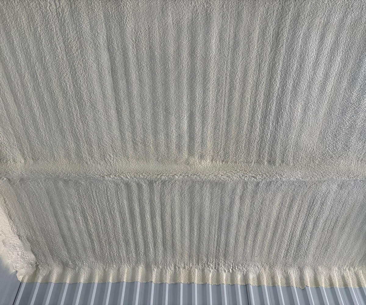 Przykładowe ocieplenie poddasza z blachy trapezowej pianą PUR zamkniętokomórkową.