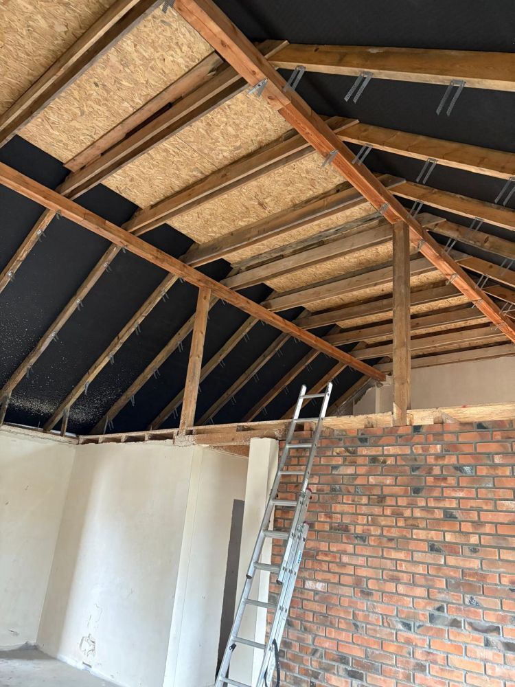 Przykładowe ocieplenie poddasza pianką PUR w budynku prywatnym. Izolacja poddasza pianą otwartokomórkową 25 cm.