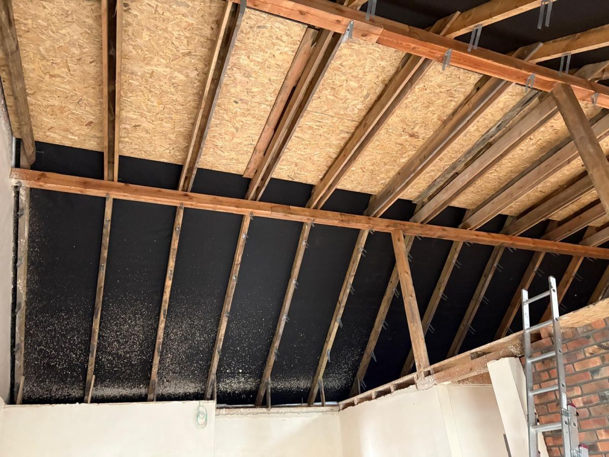Pianka PUR o otwartych komórkach działa jak dźwiękochłonna gąbka. Pochłania fale akustyczne i tłumi pogłos. Dzięki temu na poddaszu wyraźnie ciszej słychać wiatr, deszcz czy ruch uliczny. Jednolity natrysk bez szczelin eliminuje mostki akustyczne. To właśnie one przy tradycyjnych materiałach zachowują się jak kanały rezonansowe i „pompują” hałas do wnętrza. Pianka dodatkowo odsprzęga pokrycie dachowe od konstrukcji. Stukot gradu czy gałęzi nie przenosi się w postaci uciążliwych drgań na skosy. W efekcie pomieszczenia pod dachem zyskują lepszą akustykę zarówno zewnętrzną, jak i wewnętrzną. Rozmowy czy muzyka brzmią czyściej bez nieprzyjemnego echa.