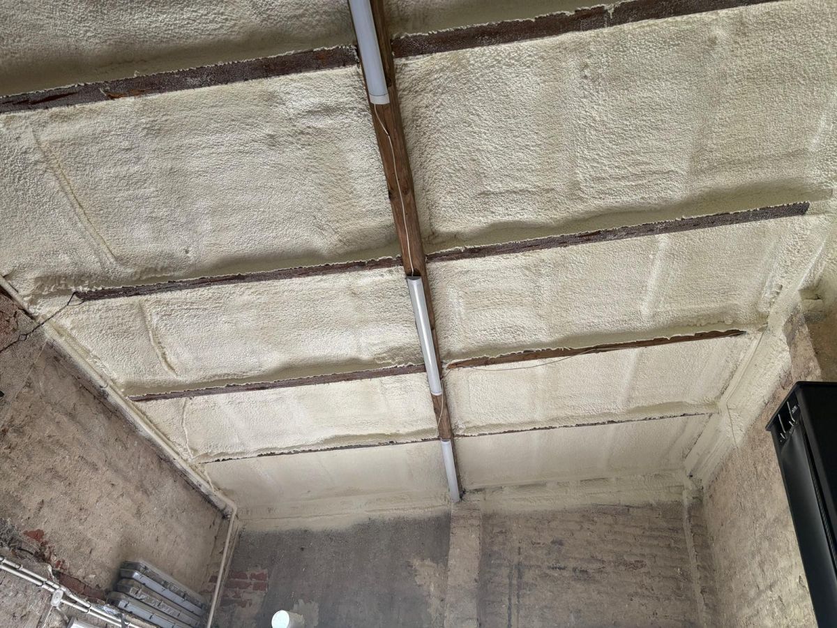 Pianka PUR wzbogacona jest środkami antypalnymi. Dlatego nawet po zapłonie sama gaśnie i nie tworzy spadających, płonących kropli. Aby jednak izolacja spełniała wymagania przepisów budowlanych, należy ją niezwłocznie osłonić warstwą ogniochronną. Zwykle układa się na niej dwie standardowe płyty g-k lub jedną płytę g-k o podwyższonej odporności ogniowej. Istotne jest zachowanie bezpiecznych odległości od przewodów kominowych i metalowych puszek elektrycznych. Pięciocentymetrowa pustka powietrzna zapobiega przegrzewaniu pianki w tych miejscach. Jako wykonawca korzystamy wyłącznie z produktów posiadających aktualny atest i co najmniej klasę reakcji na ogień E. Należy natrysku na powierzchnie rozgrzane powyżej 90 °C, ponieważ zbyt wysoka temperatura prowadzi do powstawania pęcherzy w strukturze piany. Po zakończeniu aplikacji poddasze trzeba dokładnie wywietrzyć, aby usunąć resztki czynników spieniających. Przed odbiorem prac warto jeszcze sprawdzić kartę charakterystyki produktu i zweryfikować, czy producent podaje wynik badania SBI (Single Burning Item). Przestrzeganie tych kilku prostych zasad sprawia, że ocieplenie pianką PUR pozostaje bezpieczne pod względem pożarowym. Jest w pełni zgodne z obowiązującymi normami.